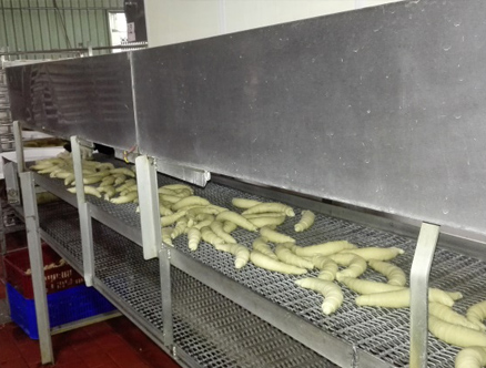 降溫冷卻之后的面筋卷,在輸送系統(tǒng)的末端集中收集,最后進(jìn)入冷庫儲(chǔ)存或直接包裝銷售。